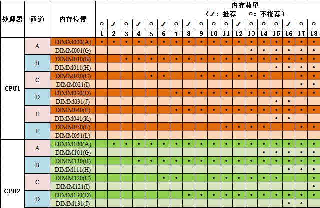 华为2288HV5服务器内存插法及内存插槽位置 2021/01/20 分类:服务器知识 3654 0 内存插槽位置 2288H V5最多可以安装24条DDR4内存,推荐使用均衡内存配置,可实现最佳内存性能。 CPU1对应的内存槽位上至少配置1条DDR4内存。 图1 内存插槽位置 图2 DDR4内存安装原则(1个处理器) 图3 DDR4内存安装原则(2个处理器) 标签:2288HV5内存插槽位置内存插法华为华为服务器服务器 上一篇: 华为服务器安装Windows 2012 R2/Windows 2016操作系统指导书(Purley平台) 下一篇: Dell PowerEdge服务器如何识别所属版本