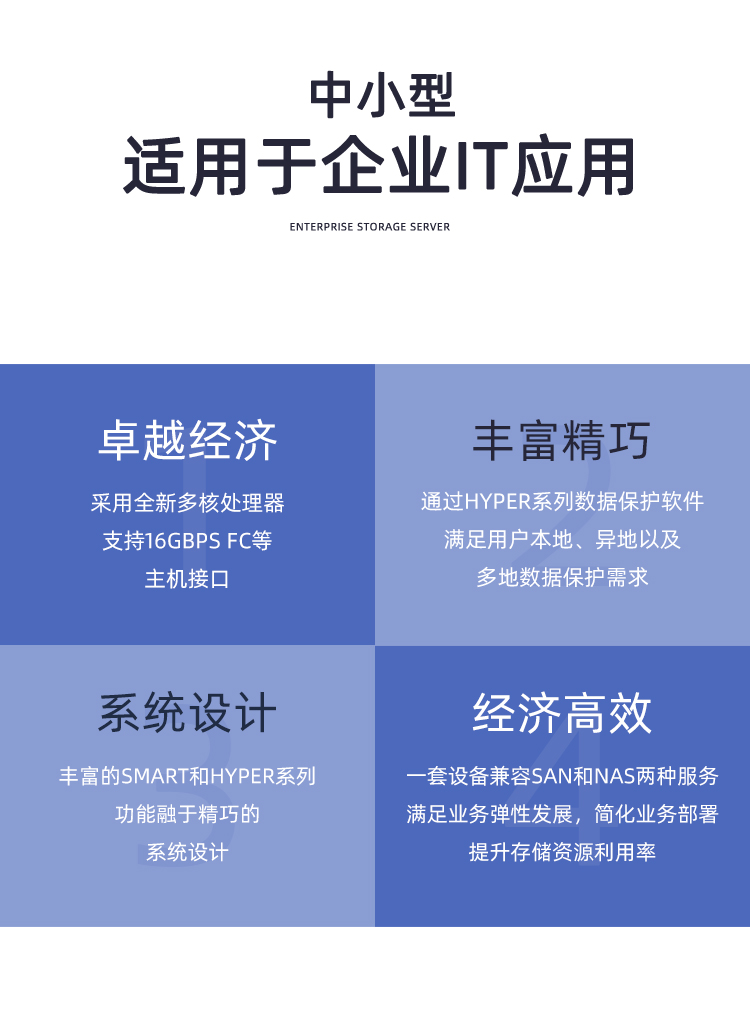 采用16Gbps FC、PCI-E 3.0、12Gbps SAS 3.0高速数据传输,高配低投入。