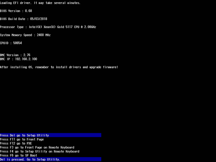 5. 在重启过程中,当出现如图10-16所示界面时,按“Delete”或“F4”。