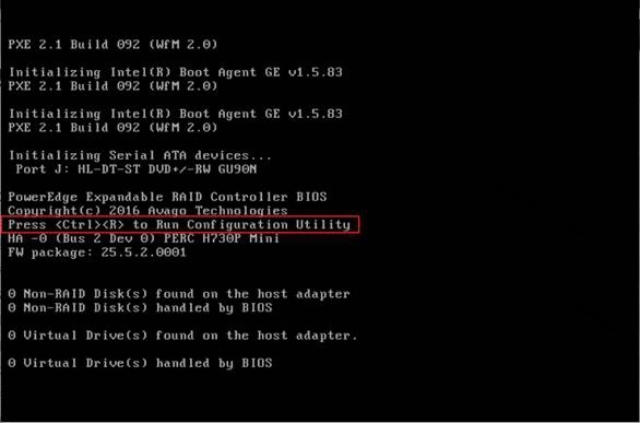 1. 在主机系统引导过程中,当显示Bioses标志时,按<Ctrl><R>组合键。