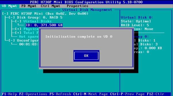 4. 此时将显示弹出窗口,表明虚拟磁盘已初始化。