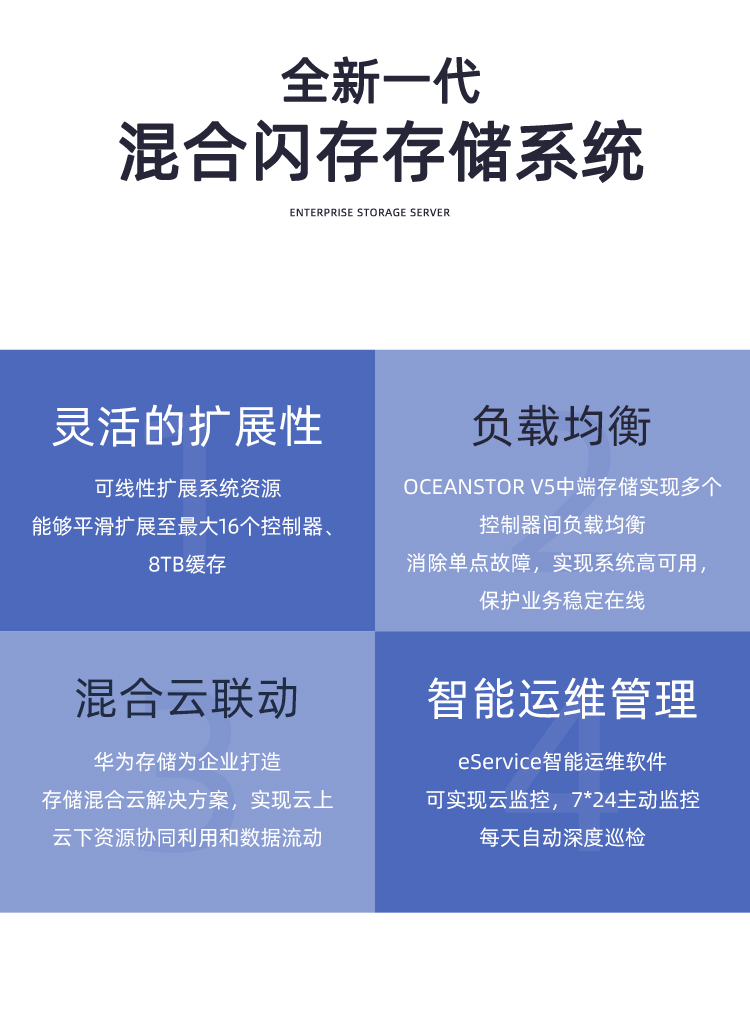 华为OceanStor 5000 V5系列是全新一代中端混合闪存存储系统,为企业提供稳定可靠,融合高效的数据服务。