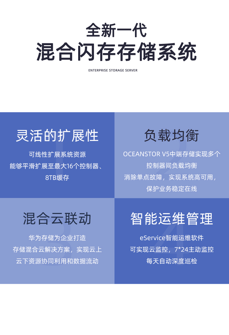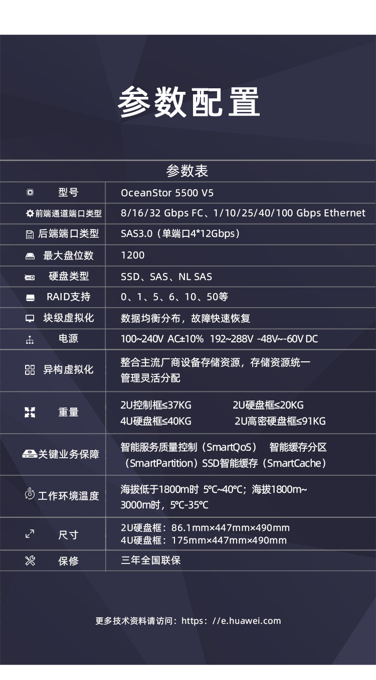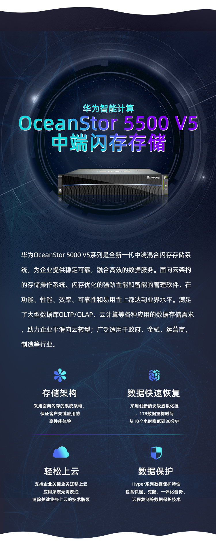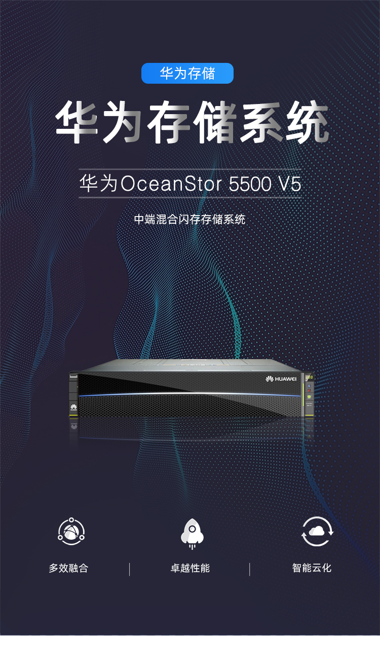 华为OceanStor 5000 V5系列是全新一代中端混合闪存存储系统,为企业提供稳定可靠,融合高效的数据服务。