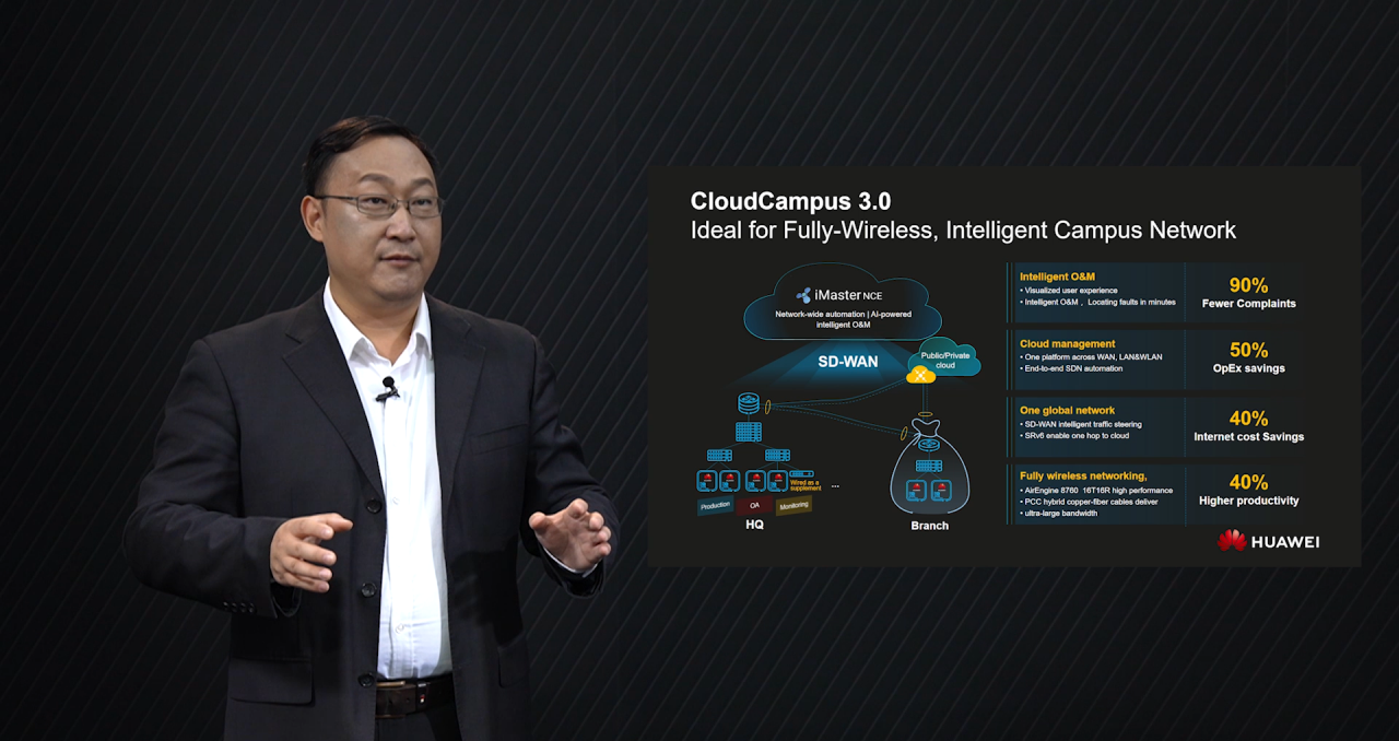 华为数据通信园区网络领域总裁李兴,发布CloudCampus3.0全无线智能云园区网络解决方案
