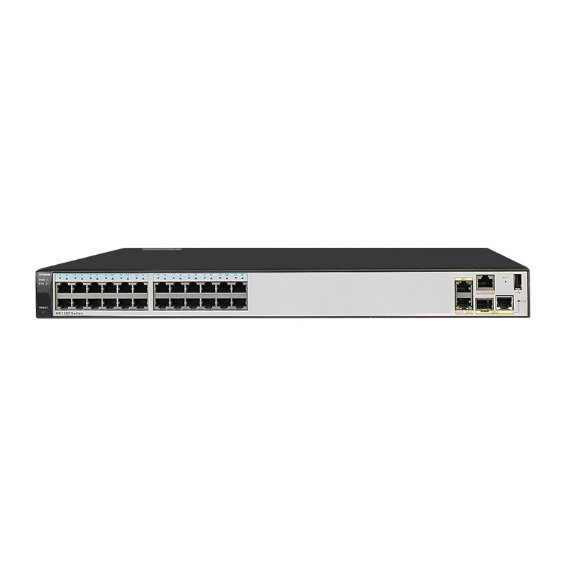 AR2200-S系列企业路由器提供24GE以太接口卡,能实现大容量高密度千兆接入的应用,方便网络运维,节省客户投资。