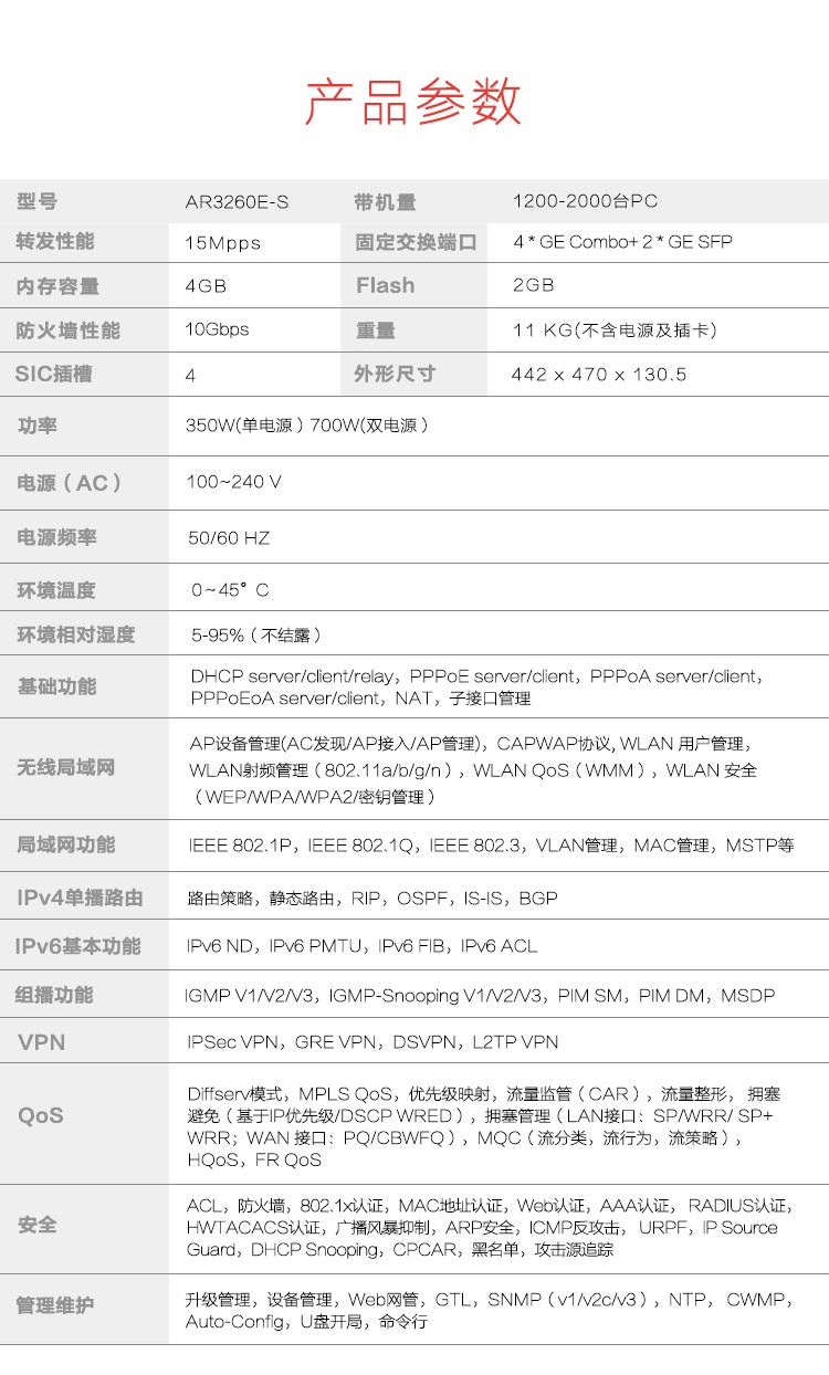 AR3260E-S路由器,可以有效降低客户TCO,提供高性能&高可靠性,并满足客户化应用需求。