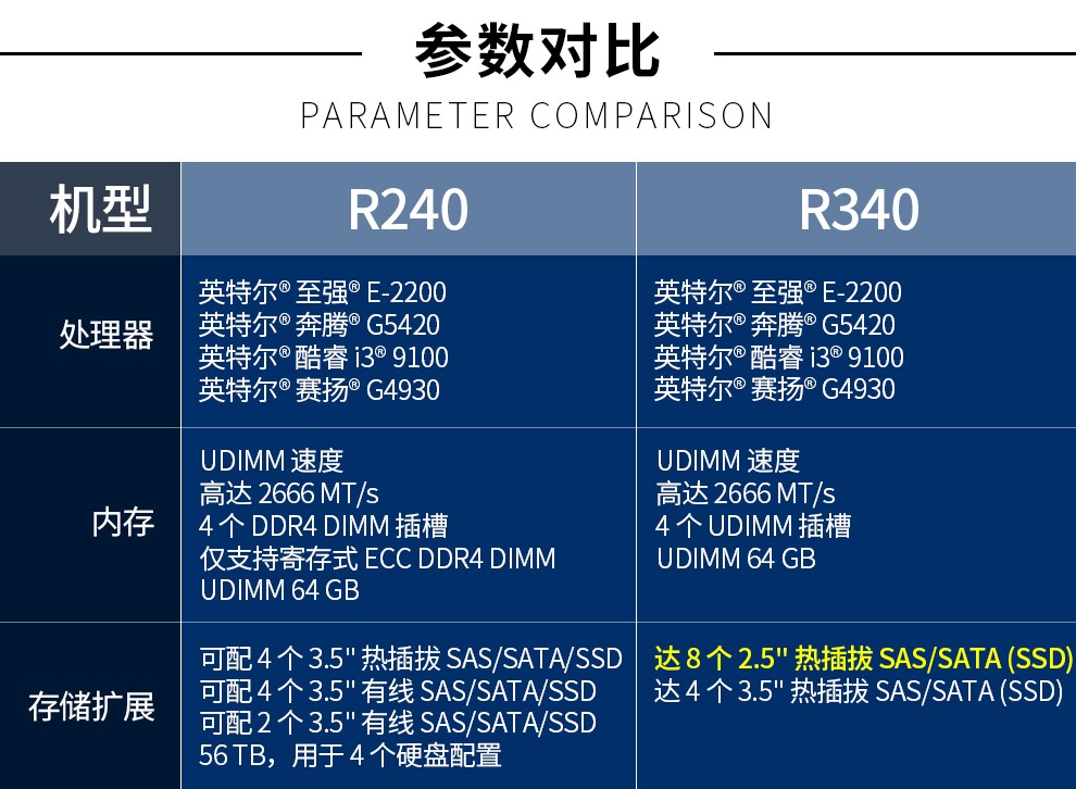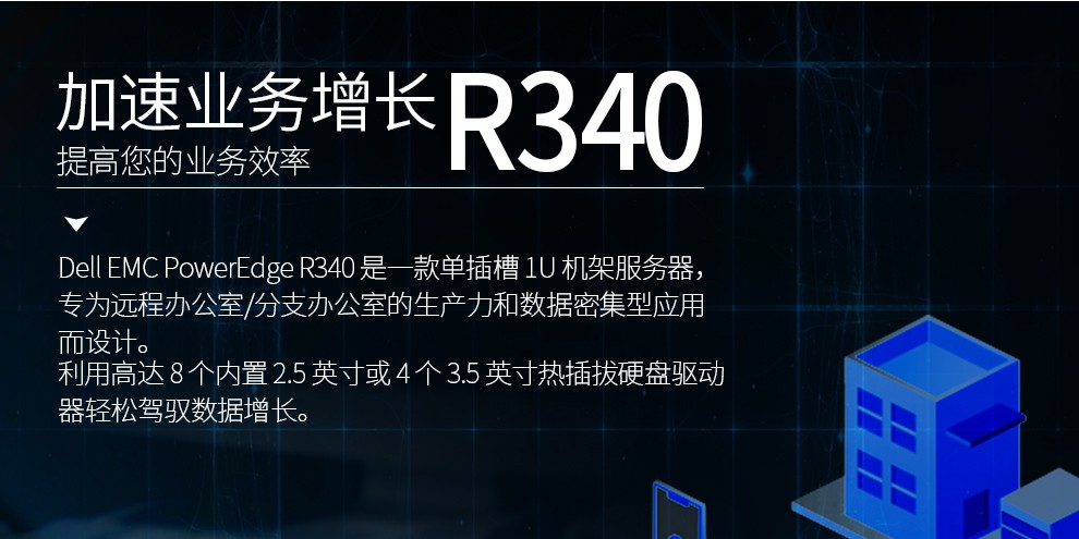Dell EMC PowerEdge R340机架式服务器 1RU服务器(英特尔) 加速业务发展 借助专为拥有远程办公室和分支机构办公室的企业设计的入门级1U机架式服务器,提高性能和扩展能力并简化IT。 根据自身需求扩展 IT R340 可灵活地增加计算、存储和内存容量。 通过选择四核、六核或八核英特尔至强 E-2200 处理器,提升计算性能,并增强同时运行多个应用程序的能力 借助多达 8 个 2.5″ 内部热插拔硬盘或 4 个 3.5″ 热插拔硬盘,从容应对数据增长 利用多达四个 DDR4 DIMM 和高达 64 GB 的 RAM,处理各种数据集 直接咨询客服询价