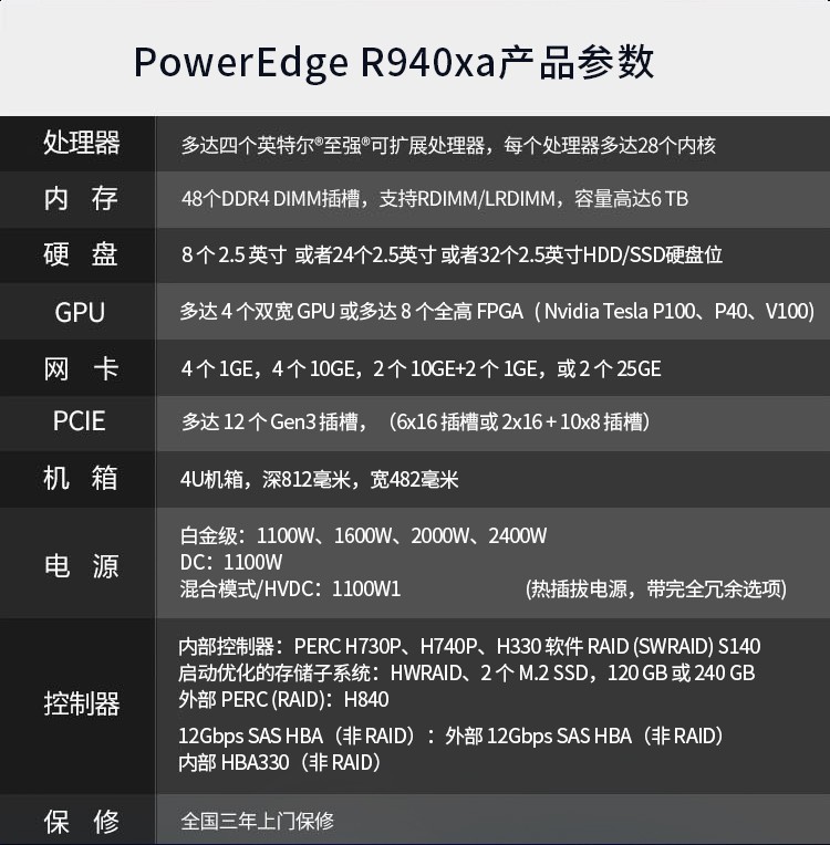 加速器优化、高密度 使用支持4个GPU和卓越散热效率的加速器优化型高密度1U服务器,满足认知计算工作负载的需求 […] Dell EMC PowerEdge C4140高密度机架式服务器(英... 详细信息