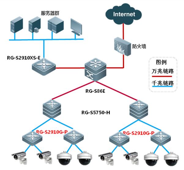 RG-S2910G-P系列产品可广泛应用于教育、医疗、政府、金融、电力、运营商和互联网等场景下的无线AP接入、监控摄像头的接入或其他需要PoE供电的PD设备,1-8端口的千兆下联端口均可提供PoE和PoE+的方式进行远程供电,最大程度解决无法铺设电力线缆或者电力线缆到达不了的场景。