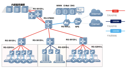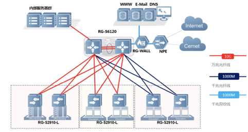RG-S6120-L系列交换机作为中型园区网的汇聚层交换机,为接入设备提供10G的带宽,实现整网10G高性能带宽链路,满足接入用户信息量日益增长的需要。
