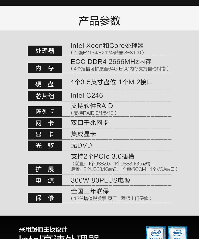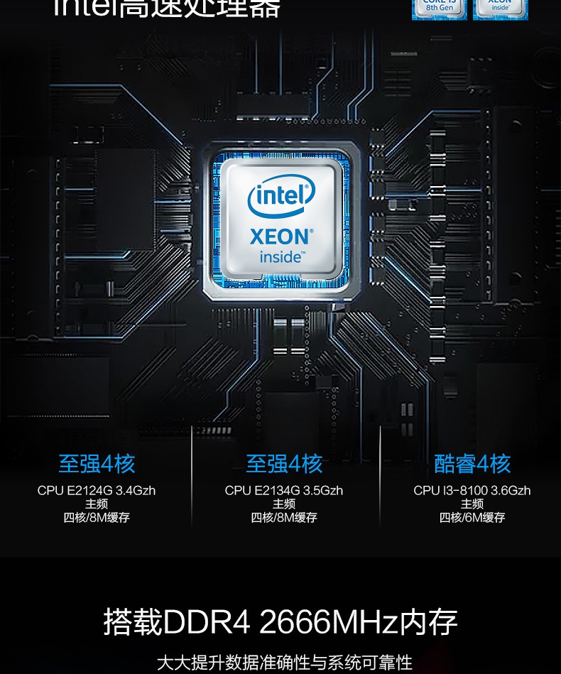 单路英特尔®至强® E-2100处理器,多达6个内核,功率为80W