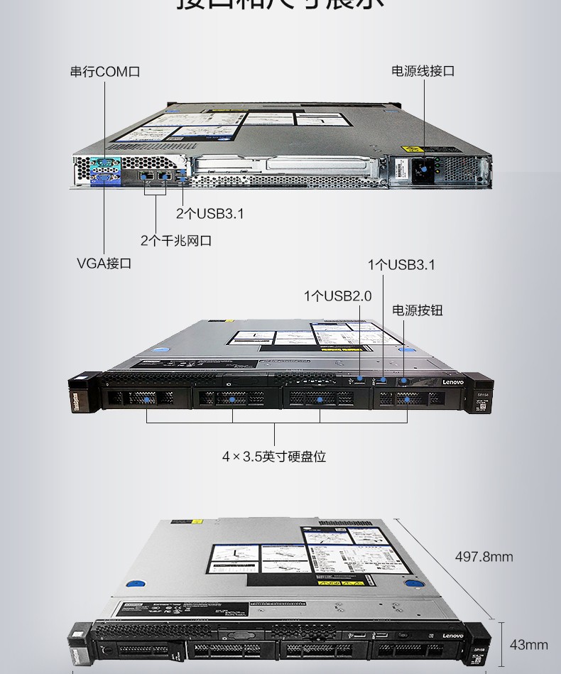 前置:1个USB 2.0、1个USB 3.1 Gen2端口,支持移动版XCC 后置:2个USB 3.1