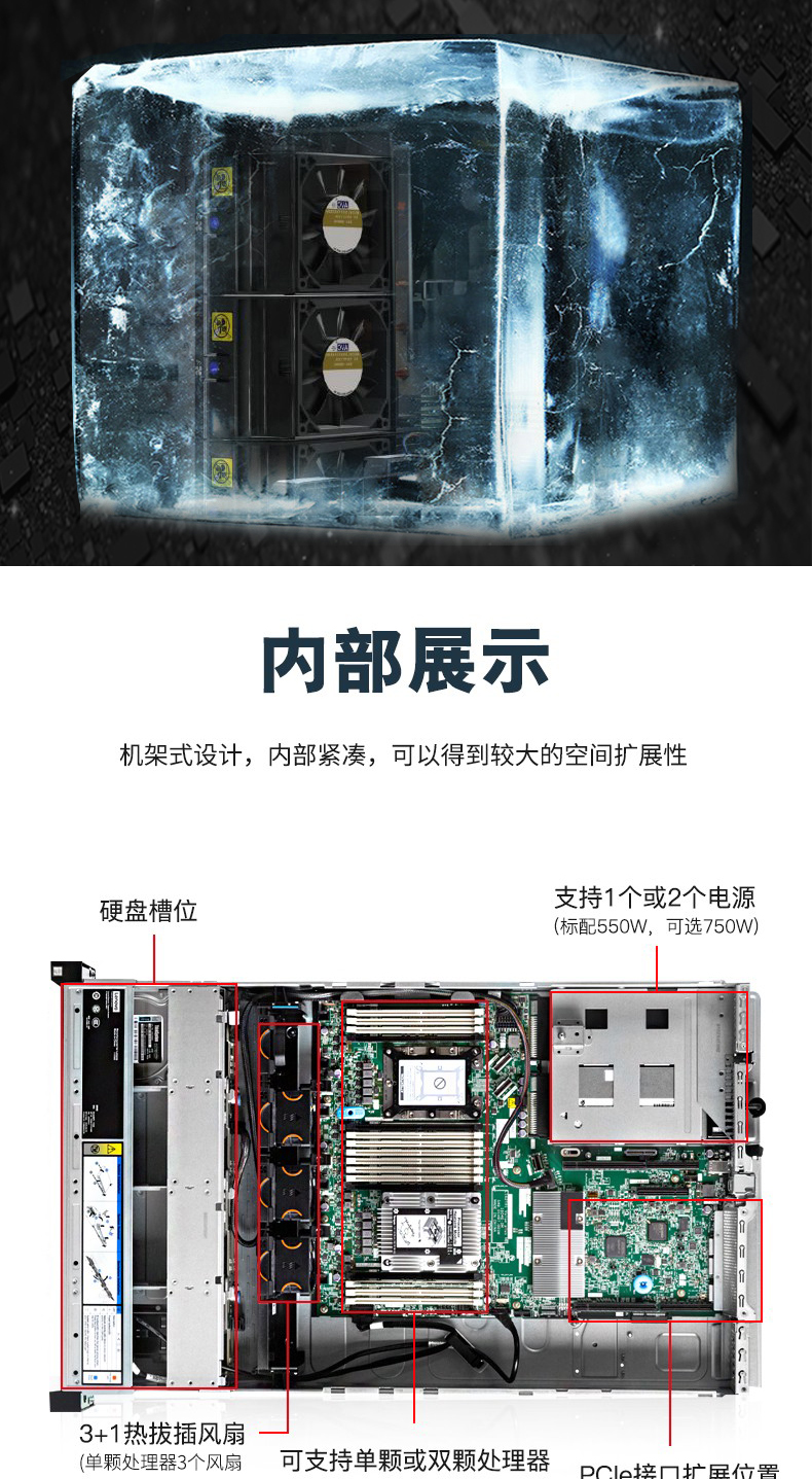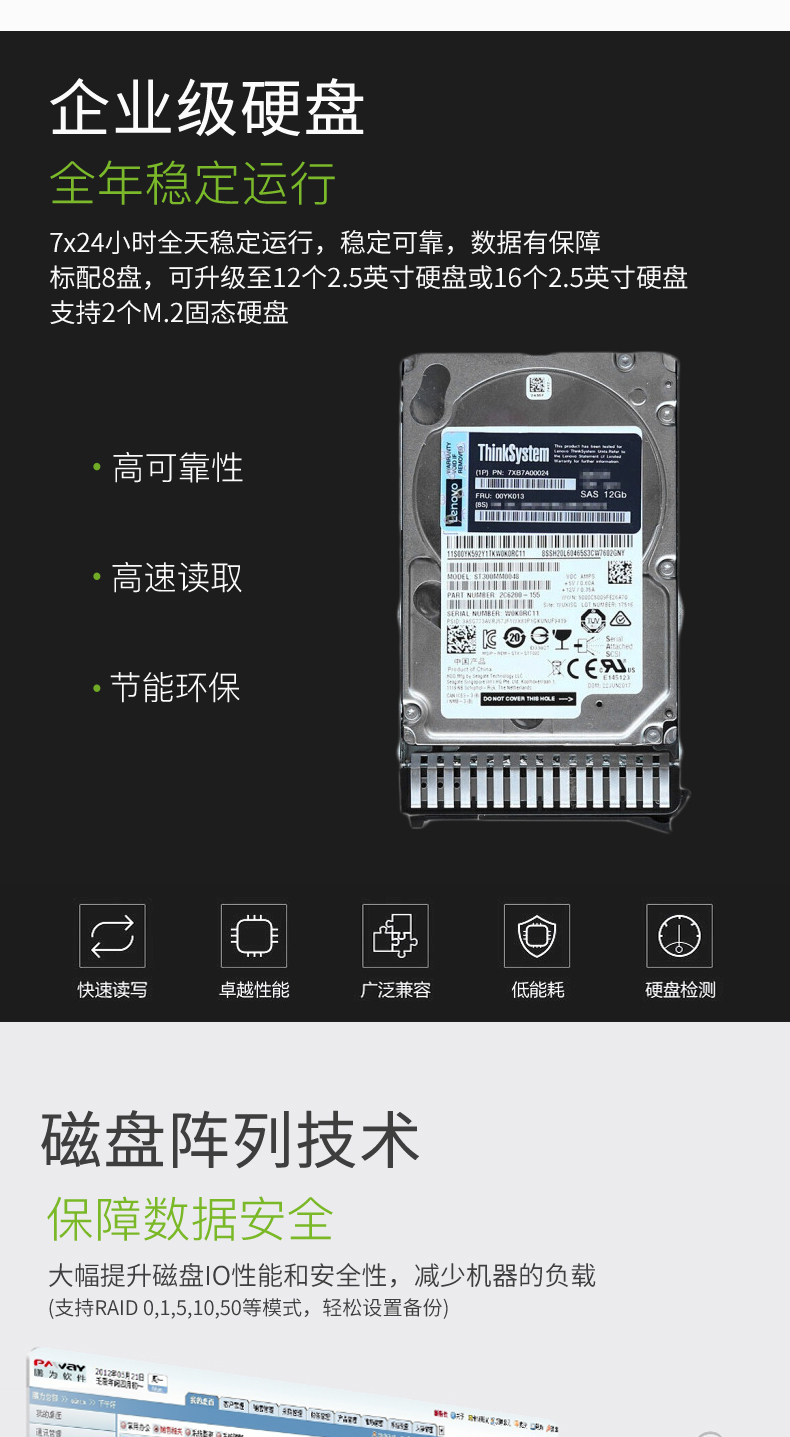 SR588 提供众多可提高性能和灵活性的功能。它搭载两个第二代英特尔至强可扩展处理器铂金系列,与上ー代产品相比,内核増加43%,内存速度高达2933MHz,可实现更高的I/O和存儲容量。配备易插拔硬盘的软件和硬件RAID可轻松管理存儲需求。