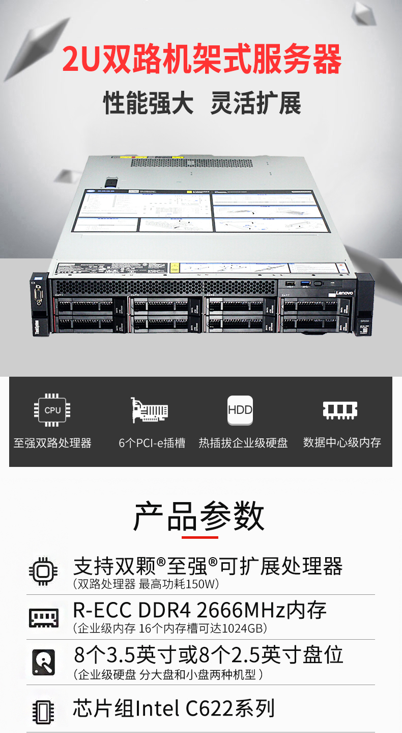 Lenovo ThinkSystem SR588 双路2U机架服务器非常适合需要高性能、存储容量、灵活I/O和弹性的小型乃至大型组织。凭借行业领先的可靠性和客户满意度以及处理广泛工作负载的设计目的,SR588能够利用组织内共享的日益增长的数据集和大型文件,经济高效地对结构化数据和非结构化数据执行复杂分析、加速事务系统和支持协作工作负载。