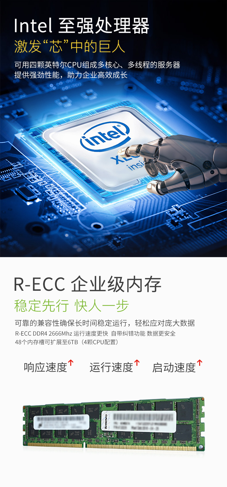 2 颗或 4 颗第二代英特尔®至强®可扩展处理器铂金系列,最高