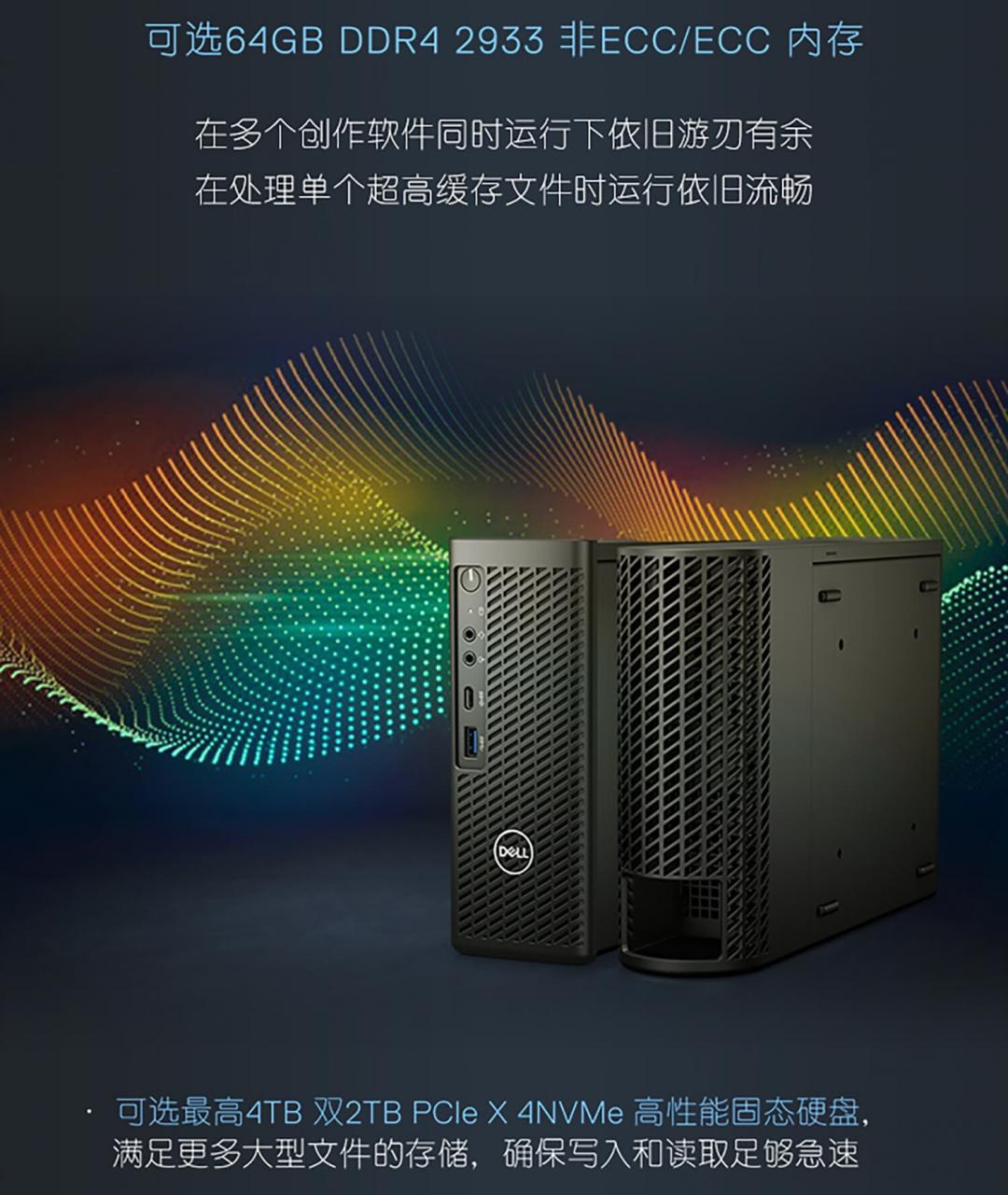 专业显卡:最高可配 NVIDIA® Quadro™ RTX 3000 显卡 (75 W)(即将推出),可选配高达 64 GB 内存(运行速度为 2933 MHz)。